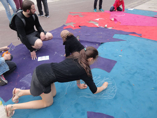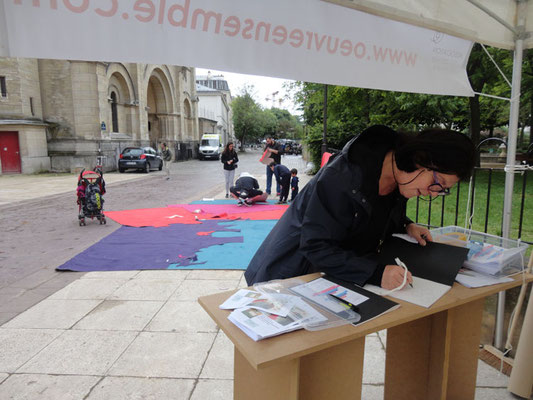 Archipel #3 : œuvre proposée et activée dans le cadre des 14'Arts.  Ce 12 juin, le 14ème se transforme en galerie d'art,  à l'initiative de la Mairie du 14ème. Malgré un très mauvais temps, l'œuvre participative a eu un vrai succès auprès du public qui a réalisé de très belles pièces pour un archipel bien mouillé !