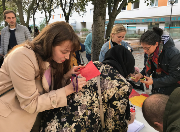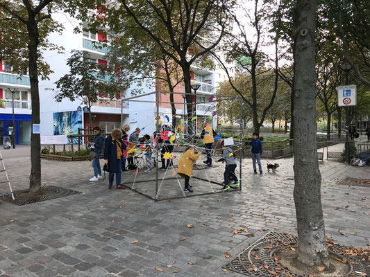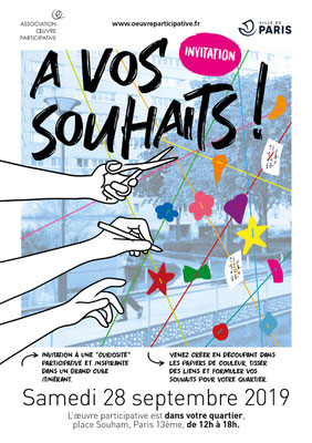 Les places Souham et Jeanne d'Arc se situent dans le quartier National Clisson, un quartier populaire du 13ème dans lequel se croisent toutes les générations et toutes les situations sociales. Ce n'est pas la vie de village car il y a peu d'occasion de faire connaissance mais le quartier semble tranquille. Notre invitation à ce temps de création dans une structure cubique "A vos souhaits" est un moment d'étonnement et d'expression, c'est aussi un moment pour se rencontrer et découvrir son voisin !