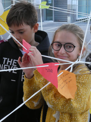 L'espace du cube se transforme au fil des heures en une œuvre originale, esthétique et joyeuse, qui attire l'attention et fait plaisir. Ephémère, l'œuvre participative se poursuivra en d'autres lieux sous d'autres formes. A suivre !