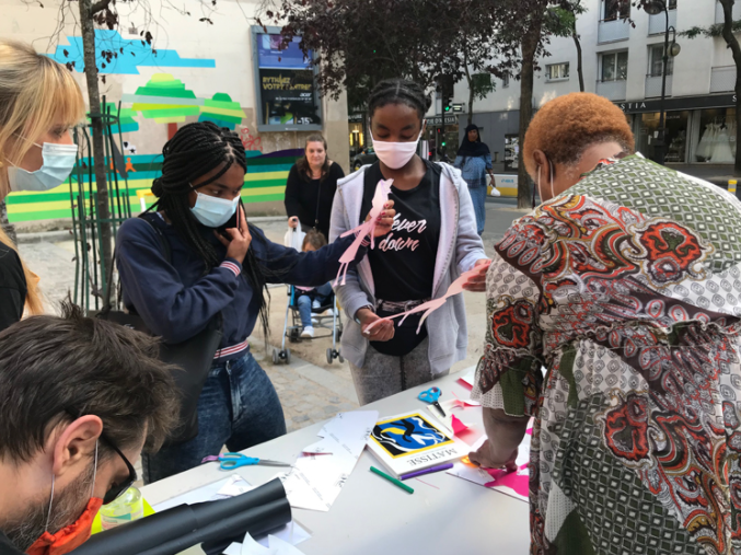 L'action artistique participative Paysage B s'est déroulée les mercredi 2 et 9 septembre et le samedi 12 septembre 2020, avec le soutien de Paris Habitat, de la Politique de la Ville et de la DDCT de la Mairie de Paris.