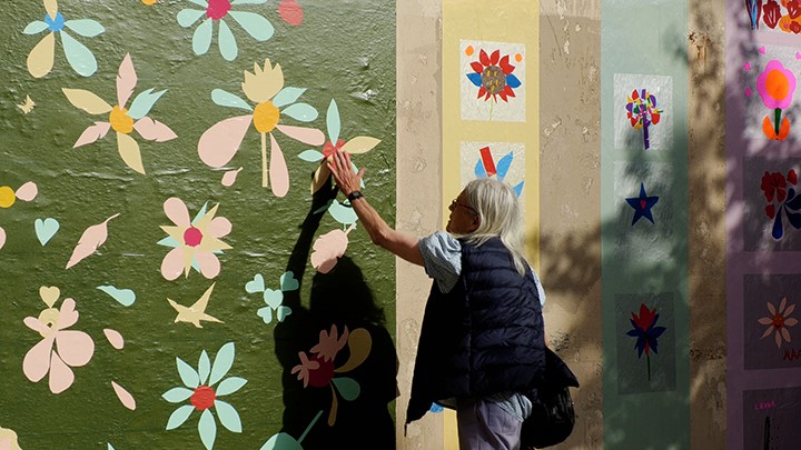Une centaine de personnes se sont emparées du projet et ont créé des motifs floraux à partir d’adhésifs de couleur, en solo, en famille, ou entre amis :